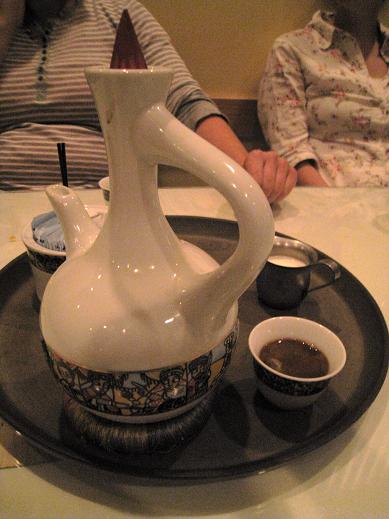 To finish of the meal we shared a pot of flavorful Ethiopian coffee ($2.50) served in a traditional style. This coffee is potent, and accordingly served in tiny cups, but, with impending research papers in mind, we kept the refills coming. Though Ethiopian Diamond is definitely still our Chicago favorite, AA is pretty good for an Ethio fix in Evanston, especially if you bring a few friends along.