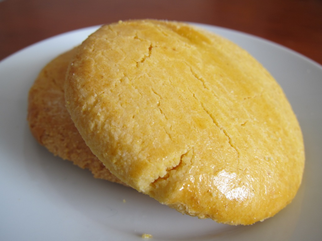 In Brazil, cornbread, known as Broa de Milho, often comes in cookie form (can’t complain about that), and is found pre-prepared in most grocery stores and bakeries. So if you’ve ever dreamed of snacking on some cornbread cookies with your tea, you’re in luck. The taste is not quite the same as US cornbread, and Broa de Milho have a more crumbly texture, less sweetness, and a shiny egg-wash finish. However, the one thing that really makes them stand out as true broa de milho vs. cornbread cookies is fennel seed (erva doce in Portuguese). There is a recipe in Portuguese to make broinhas “little breads” on Tudo Gostoso. The following English language recipe on From Brazil to You makes a monster-sized cookie/round, which is the traditional way to make broa, as opposed to in small cookie format. The name “Broa de Milho” may also refer to Portuguese Cornbread, which is more likely made in loaf form.