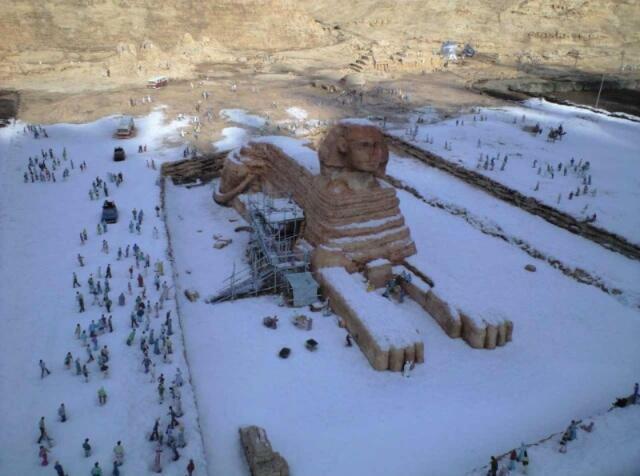Happy winter wishes from the miniature snow-covered Sphinx in Tobu World Square Theme Park in Japan.