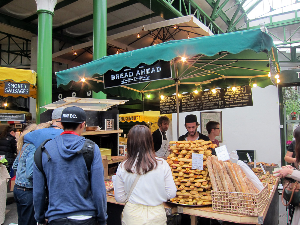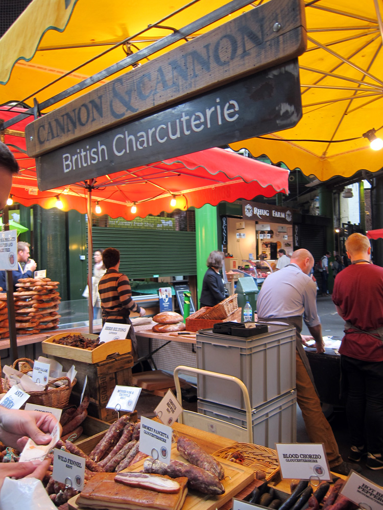 There is nothing we love more than a good market, and London has them in spades. Borough Market is one of the largest and oldest markets in London, and the current iconic glass and metal structure was originally built in 1851, and after additions over the years it was refurbished at the beginning of the 21st century into its current form. Though it was originally a wholesale market, Borough Market today is a mishmash of food stalls selling everything from fresh fruit to meat pies to olive oil to tapas under one roof. Though we are always fans of food from all over the world, it was especially great to see all of the local British foodstuffs available for sale, especially the cheeses. We pieced together a light meal (very reasonably priced for London) from various stalls, after wandering around and taking in all the sights and smells.