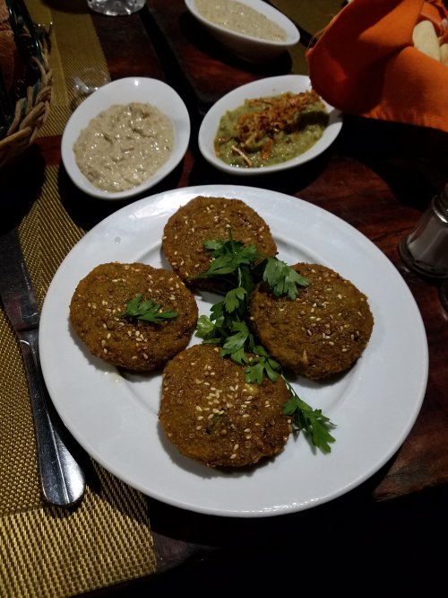We also visited a well-known classic restaurant for Egyptian comfort foods, Felfela, which is actually built into an alleyway and is particularly atmospheric (seen above). After that we visited a hole-in-the-wall homestyle Egyptian restaurant tucked into a nondescript storefront in downtown Cairo that we can assure you could never find on your own. At these two restaurants we sampled heartier Egyptian fare including Egyptian falafel (made of fava beans instead of chickpeas as it is in many other places), a parade of mezze, and the polarizing Egyptian soup molokiah (dark green soup seen below).