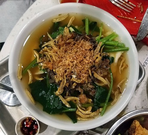 We ordered two chicken dishes, which served as appetizers. First up was the pandan chicken ($6.5) steamed chicken dumplings steamed in aromatic pandan leaves. Those who like chicken wings, will love the Belacan wings ($7) bone-in chicken wings coated in a salty-sweet caramelized shrimp paste chicken. Our favorite light bite was probably the cold spicy sesame noodles ($8), the house-made spicy sauce was both rich and savory – a total umami bomb – and perfectly served cold. We can’t turn down handmade noodles, so we had to order the Pan Mee ($12) flat homemade flour noodles in anchovy broth, fried anchovies, wood ear mushroom, spinach and minced pork. This was probably my favorite dish, and the mix of flavors with the salty anchovy kick was amazing.