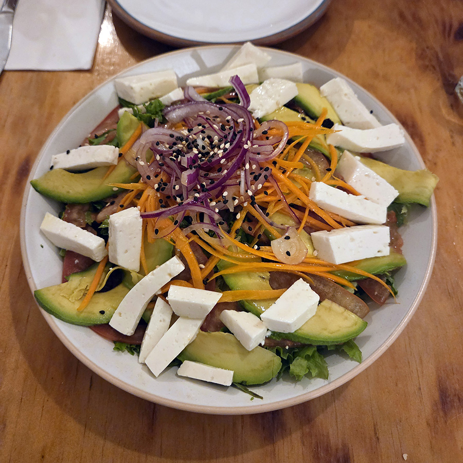 Refreshingly, the restaurant also offered a colorful garden salad with fresh queso Oaxaqueño, a lighter dish that was somewhat of a rare find for the vegetable-hungry. They also offered us a free shot of the house mezcal at the start of the meal, which M enjoyed sipping alongside his meal. For dessert we had the new-to-us dish Pan de Queso Istmeño. This regional specialty was a sweet yeasted bread topped with sesame seeds, accompanied with a scoop of nieves, the shaved ice of the region. Other options for dessert included pan de elote, a local style of cornbread, or a full size serving of nieves. Every dish at Totopo Güero was delicious, the service was exemplary, and the price was right. As noted, we actually visited this restaurant twice on our trip, something we rarely do. We highly recommend Totopo Güero for a delicious regional taste of Oaxaca’s culinary delights.