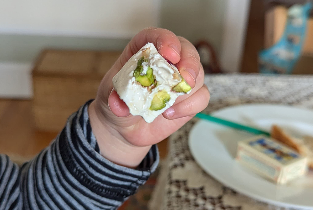 Torrone can also be found in a very similar format in Spain, where it is called turrón. The similarities between turrón/torrone and gaz are not coincidental. Though its exact creation story is lost to time, it is speculated that one possible origin for Mediterranean European nougats is through the adaptation of Middle Eastern nougats as they entered Southern Spain or Sicily through cross-cultural exchange. Munching on our Persian and Italian treats, we were grateful for new friendships and cross-cultural culinary connections.