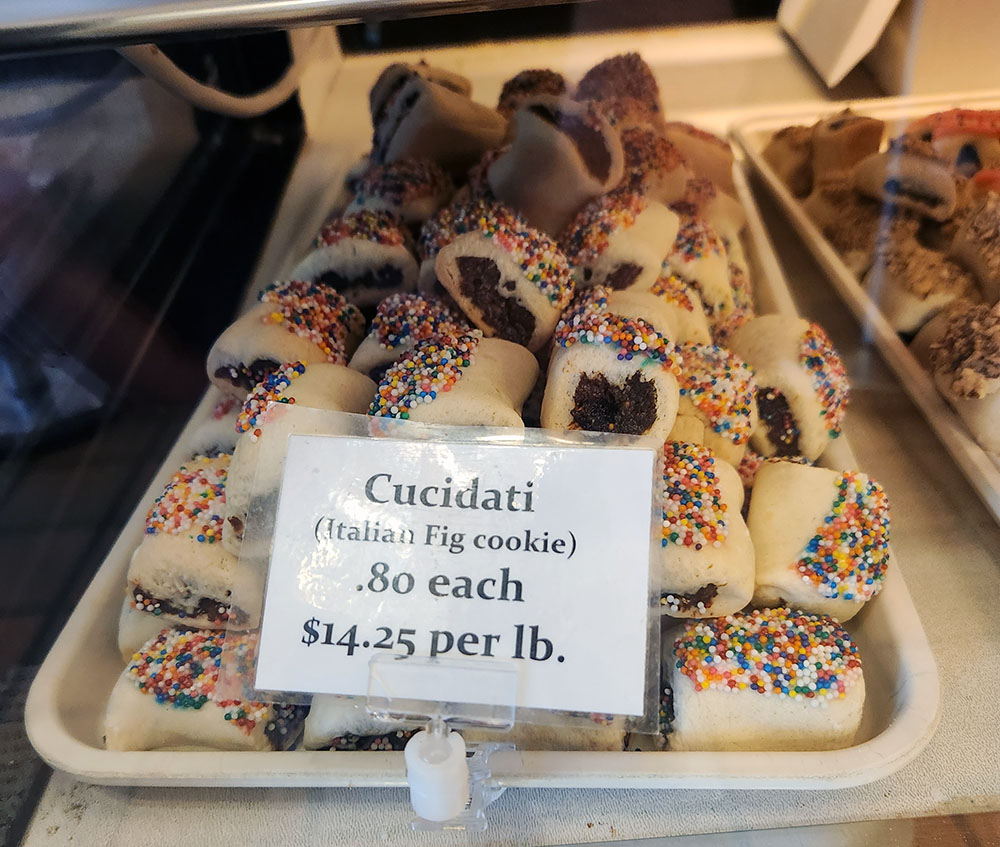 However, our favorite treats at Angelo Brocato are the full assortment of Italian cookies, of course. There are dozens of varieties on offer: cuccidati, pignoli, rainbow cookies, biscotti, ricotta cookies, chocolate drops, etc. They also have some rarer varieties like nucotoli (cinnamon spice cookies). You can buy cookies by the piece, pound, or even in sealed packages for some of the more popular varieties. The Sicilian representation in the cookie varieties is significant, and we particularly love their cuccidati and biscotti regina, both of which are staples for St. Joseph’s Day.