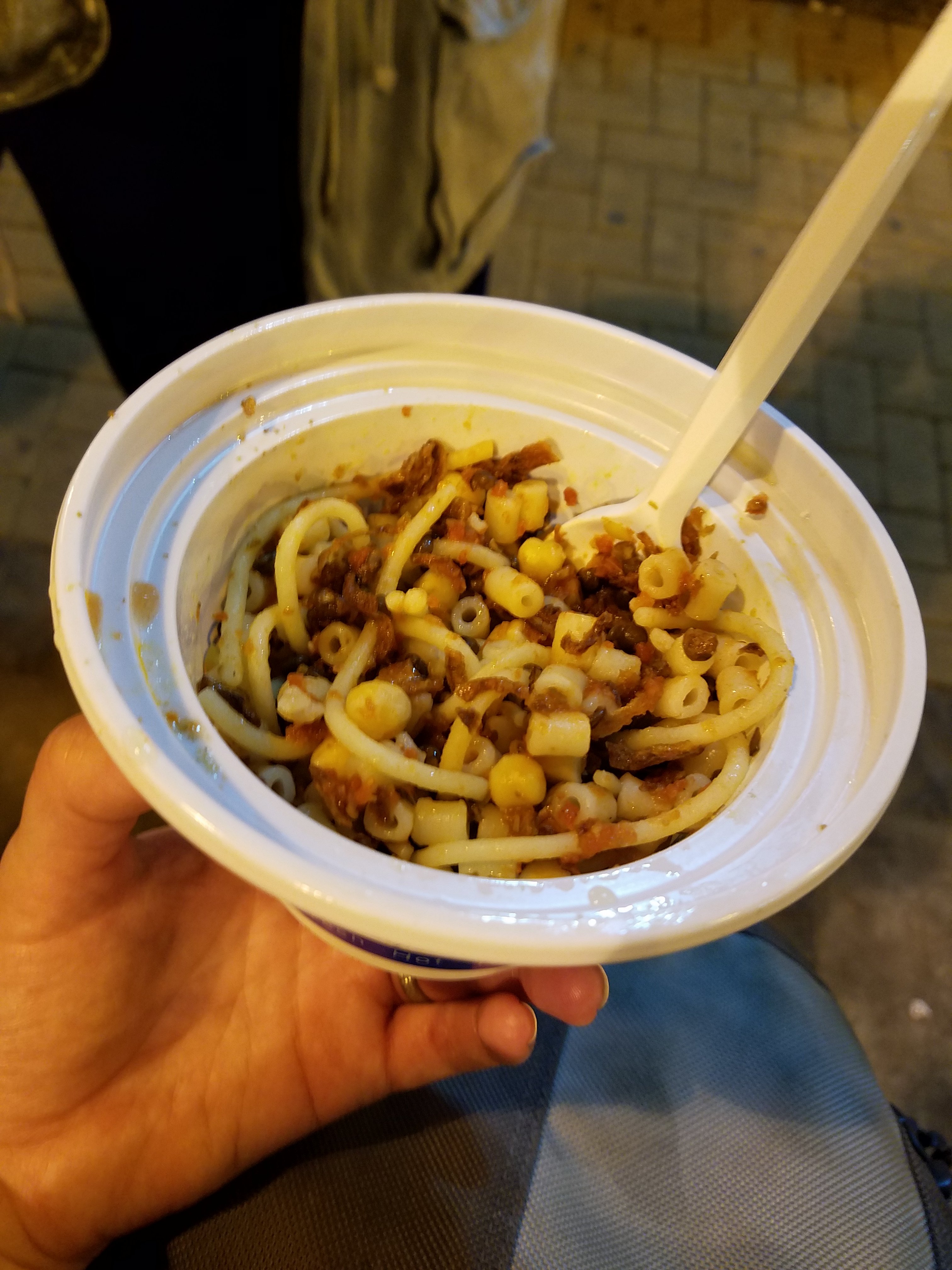 In terms of more lunch-y items, of course, we had to order our favorite, koshary, which is a delicious, carb-heavy mix of pasta, chickpeas, rice, tomato sauce, and topped with fried onions. Koshary prepared in giant batches and doled out in small cups or bowls is a popular street food in Cairo, which is where we first enjoyed it. To finish your serving of koshary, you add your own vinegar and spicy sauce to taste. We have to say that this is definitely some of the best koshary we have had in the US. Among the offered wraps, our favorites included the grilled chicken and the beef shewarma. Our nephew particularly liked the beef hawawshy, spiced ground beef and onions flattened in pita bread, giving it the appearance of a pizza more than a wrap.