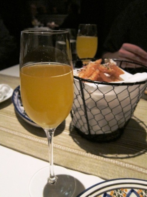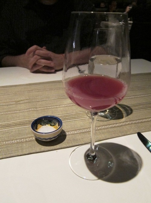 The fennel drink, served with our last entree dish, reminded us of after-dinner digestifs (you know the candy coated fennel seeds, Mukhwas, you sometimes get at Indian restaurants?). This drink, as you can see above, was shockingly magenta. The blood orange probably only amplified the color. Though we might have never thought to combine blood orange and fennel, the result was delicious.