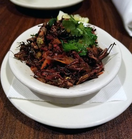 Dessert: Reyna’s favorite dish, nicuatole. In its simplest preparation (the white part in this photo), this dish only contains corn, water, sugar, and cinnamon. Yet making it is quite complex, involving a series of different processes and waiting that adds up to between four and twelve hours of prep time. One eventually arrives – very surprisingly – at a consistency like jello or pudding. Some then top the mixture with a sauce made from tuna fruits. Here, Reyna made a special sauce from sugar and cochineal, a small insect that lives in nopal cacti, and whose red dye is frequently used as a coloring ingredient. An astoundingly unique dish, and one that will be very difficult to re-create in Chicago.