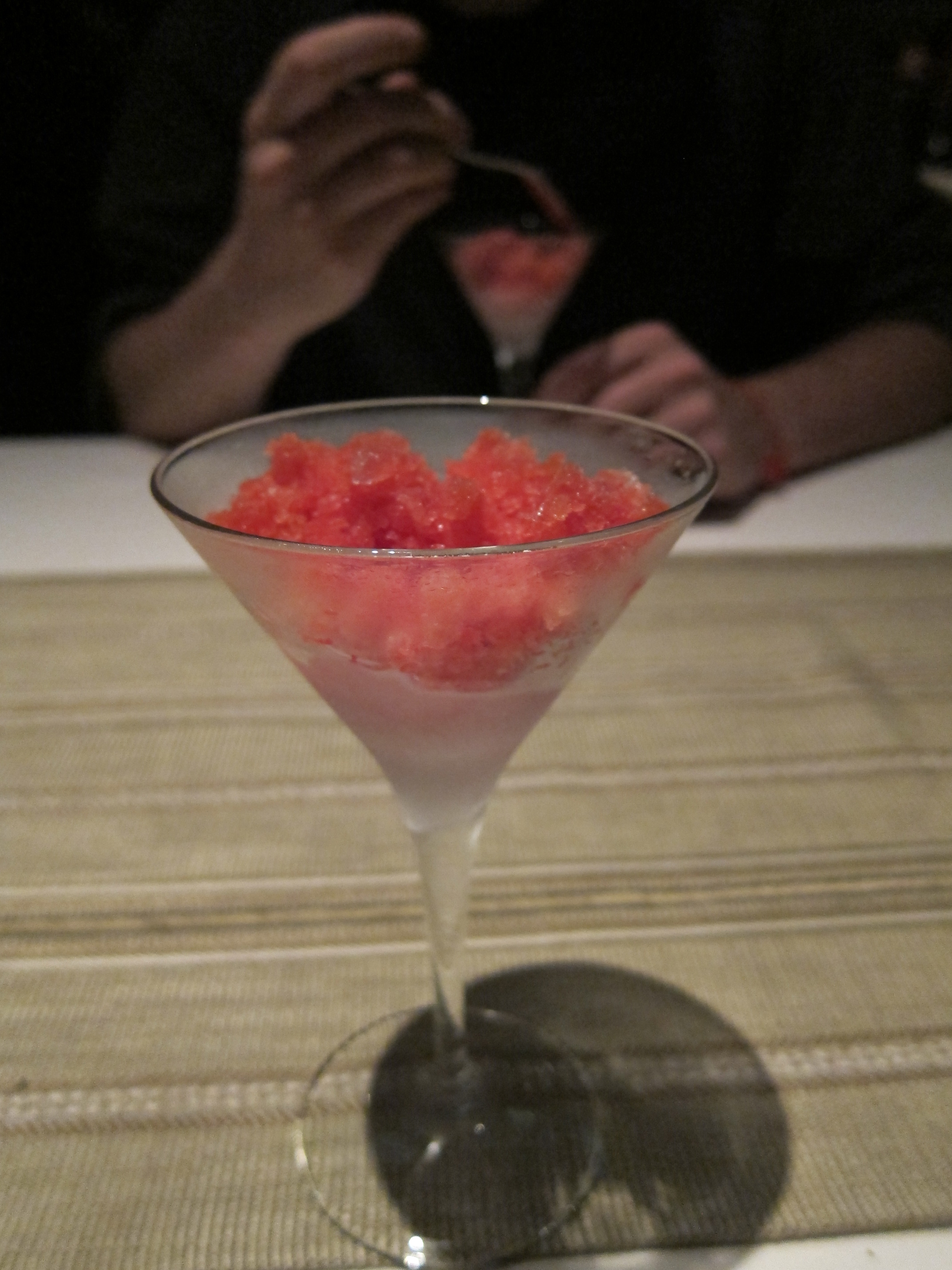 This dish may have tied the bucatini as the highlight of the meal. With so little meat in Sicily, it is saved and savored for weekends, when pasta sauce is made with chunks of meat, the meat removed and the sauce served over pasta, and then the meat consumed on its own after. This is a rich culinary tradition – it still goes on in our large Italian family homes – and it could not have been better represented on this plate. The pork shoulder we were served – and this is not an exaggeration – dissolved on our tongues: “Yeah, we braised it for a little while before you got here,” our server said with a wry smile. We have never had any pork so amazingly cooked in our lives, and it would take such a large, sophisticated, and pre-set menu to allow a chef the chance to do this outside of a small restaurant that would specialize in such a thing. The accompanying red meat sauce tasted like something one of our grandmothers would have made, and hit well on all the notes of the pork (thus confirming they were in fact made together). Grilled (and very juicy) meyer lemons took the dish to new heights. With all that flavor, the grilled zucchini and tomatoes served with it were something of an afterthought, and probably our lest favorite dish of the evening. They were fine, just unremarkable and completely unnecessary given the wonder of the pork shoulder’s main event.