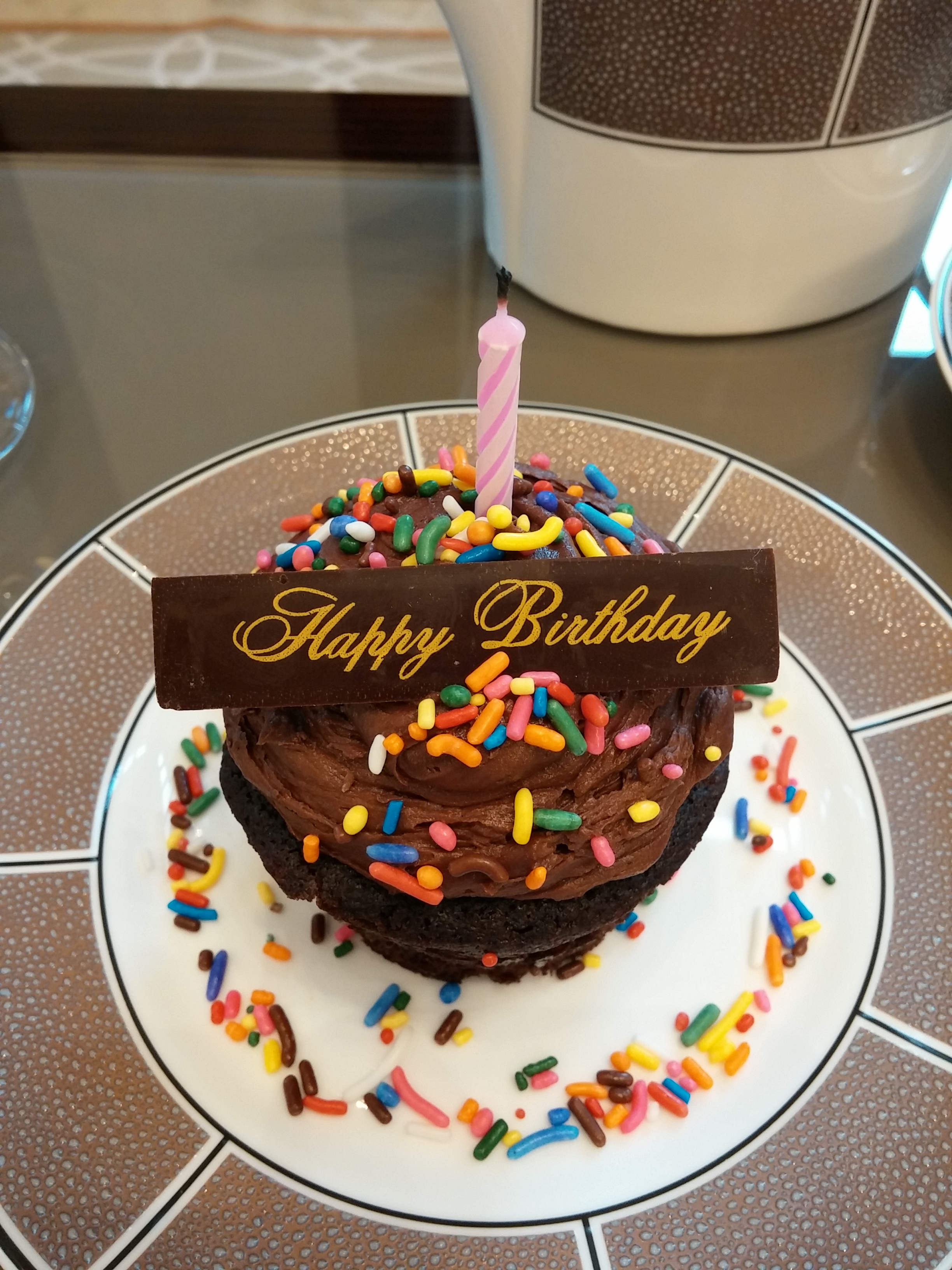 Pretty much everyone in the room had the afternoon tea service. We ordered a tea for 2, which came out in short order.The loose-leaf tea selection is modest, and we each got a teapot, one with mint and one with chai. Other options included Chamomile, Jade green, Rooibos and Earl Grey. Both the sweet and savory elements come out at once, on striking custom black and white china. For the savory items, we had standard crustless sandwiches: tuna, egg and salmon. These were tasty, but nothing to write home about.